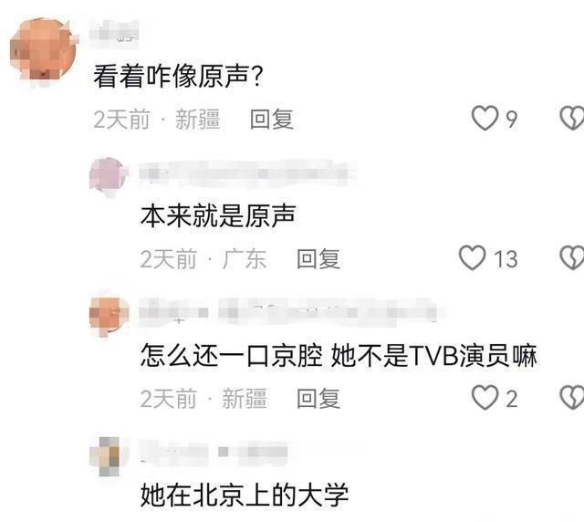 这不12月5日,她在短视频平台上发布的电视剧片段,就收获了观众台词方面的一致好评。 视频中的她虽然面无表情,但逐字逐句中将老北京的口音展现出来,让人怀疑她真的是港星,而不是北京土生土长的人。